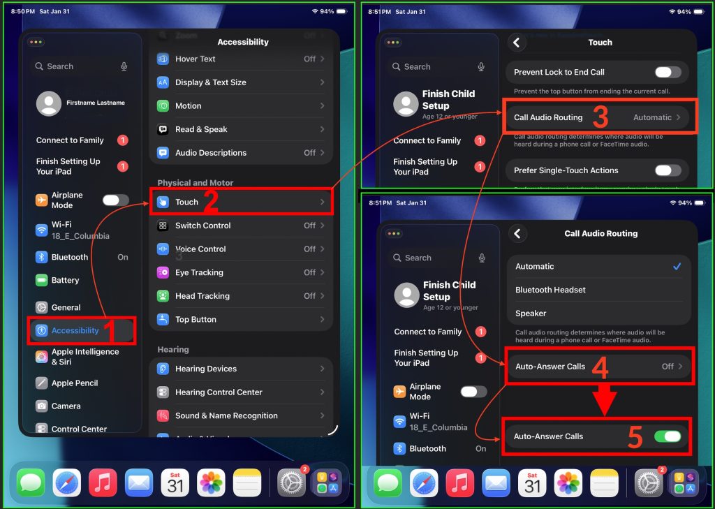 Mom has trouble managing a smart phone – even the simplified Lively phone designed for older adults. I had a spare iPad lying about, so I created an Apple ID for her, added my sister and myself as contacts, and set it up to auto-answer FaceTime calls with these steps: